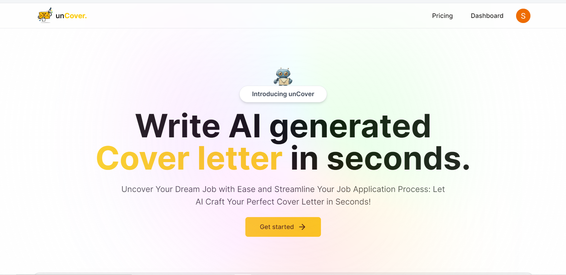 unCover is a Saas web application designed to streamline the job application process by automating the creation of personalized cover letters. Say goodbye to manual cover letter writing and hello to effortless job applications!