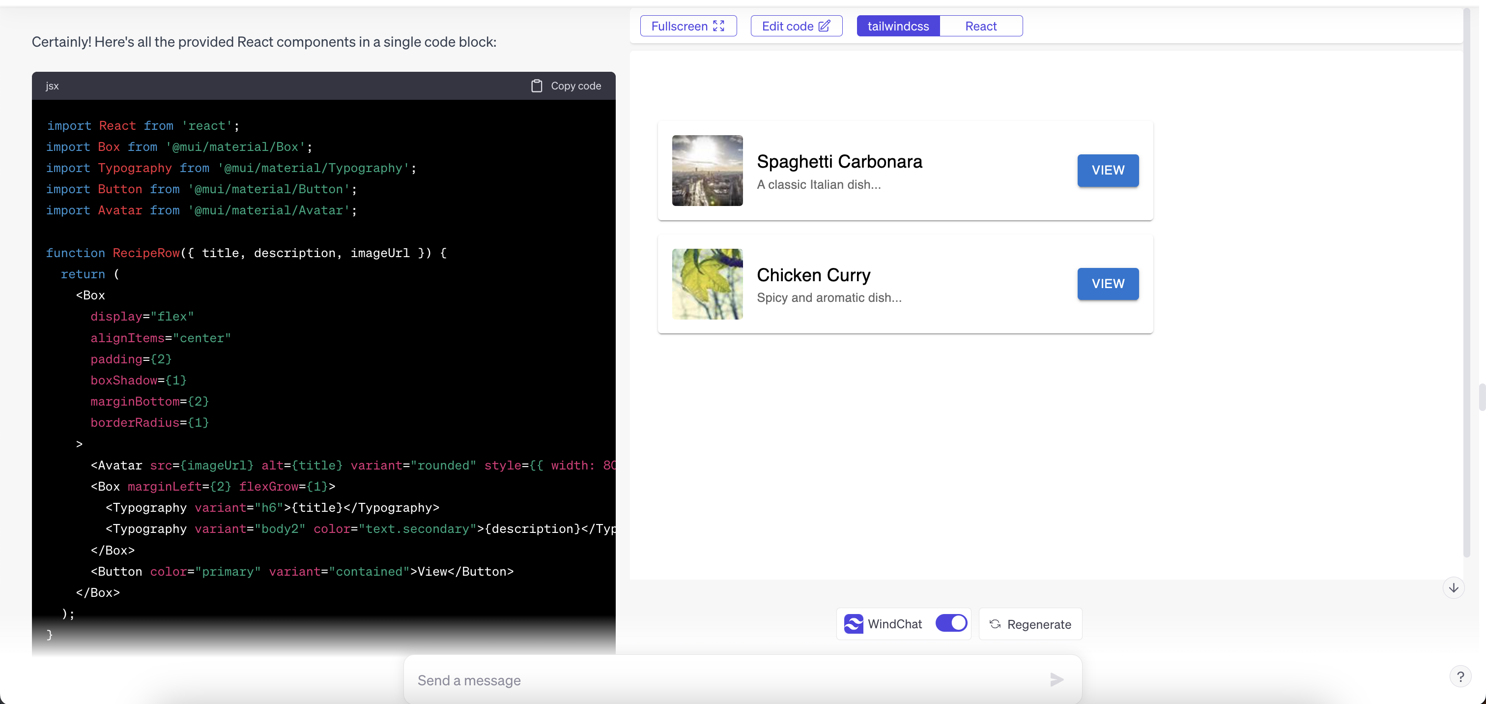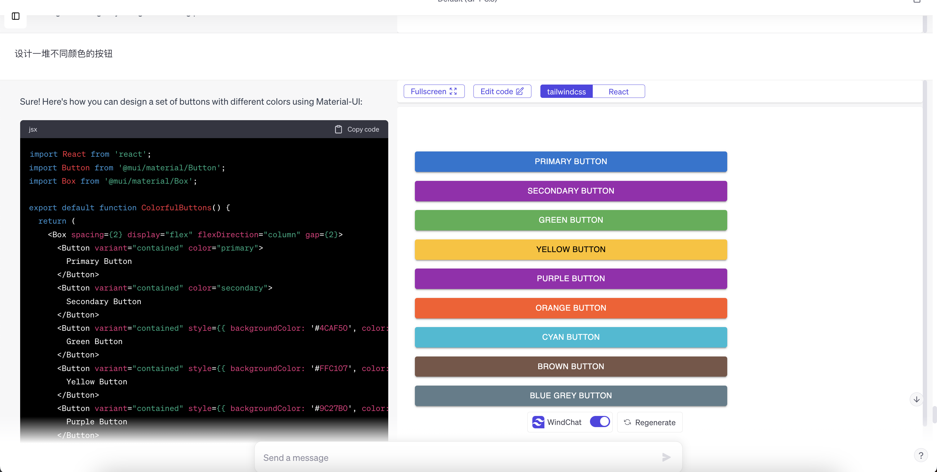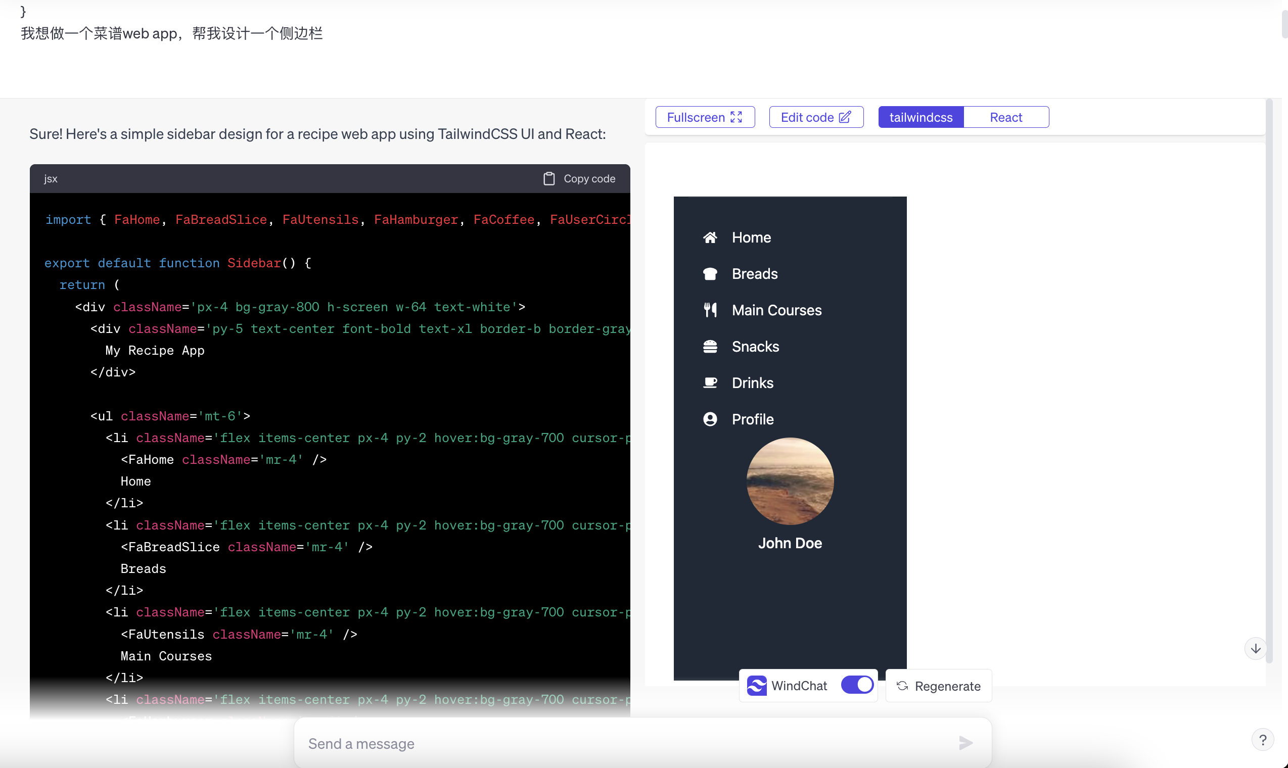 WindChat - An open sourced "v0.dev" alternative