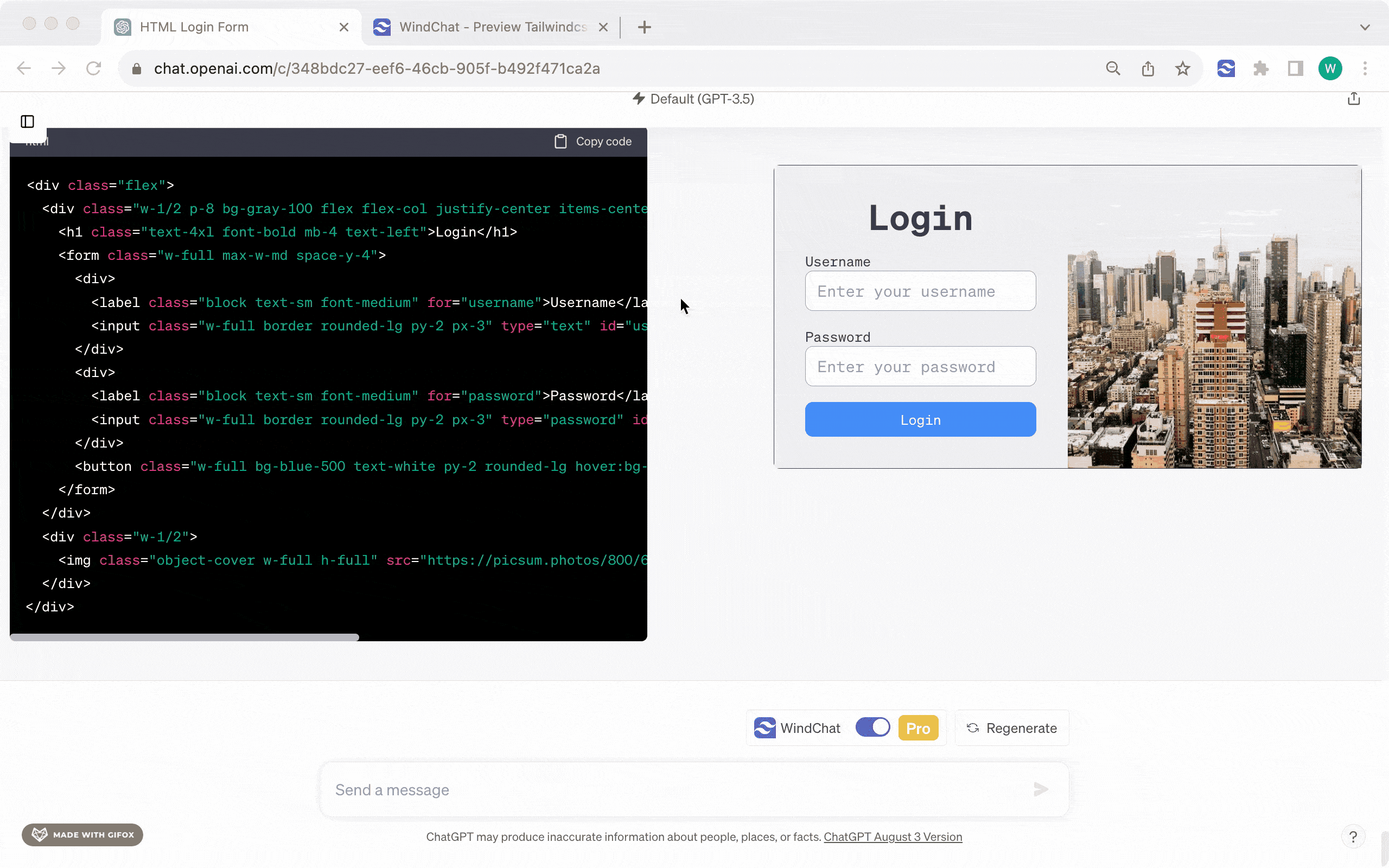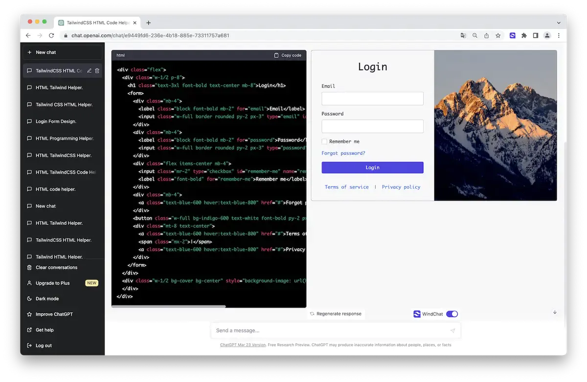 Preview Tailwincss and HTML in ChatGPT